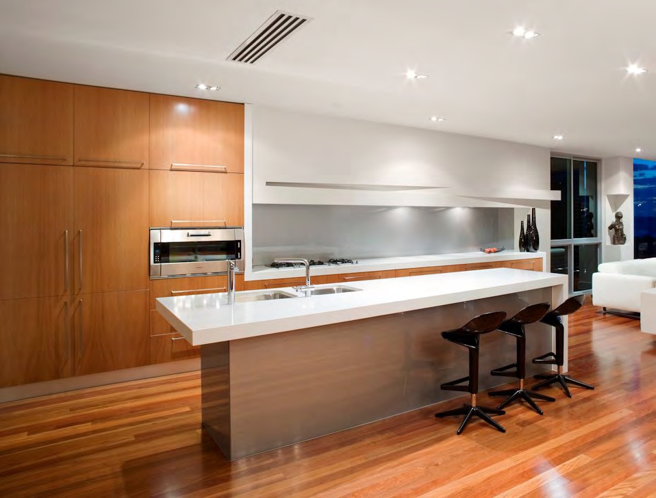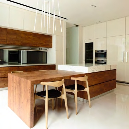 Timber veneer provides the natural beauty of wood but at a more affordable price. It is heat-resistant, stylish, and widely used in high-end homes. Buy Kitchen Cabinets that combine modern design with warmth.
