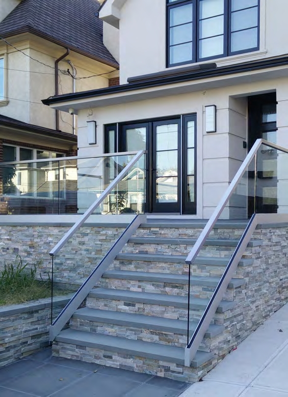 Each glass panel is supported by carbon-steel or stainless-steel frames with optional LED lighting features that highlight the architectural details. The result is a stunning focal point that enhances property value and aesthetic appeal.